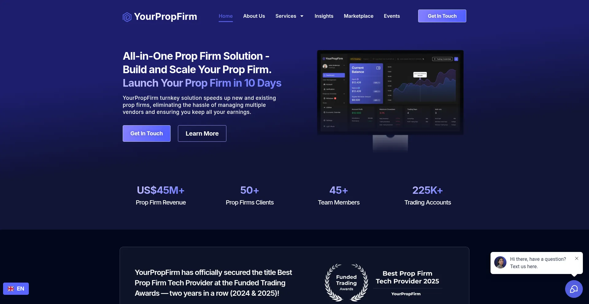 Launch Your Prop Firm in 10 Days. Keep 100% of Your Profits! · YourPropFirm turnkey solution speeds up new launches and enhances existing firms, eliminating the
