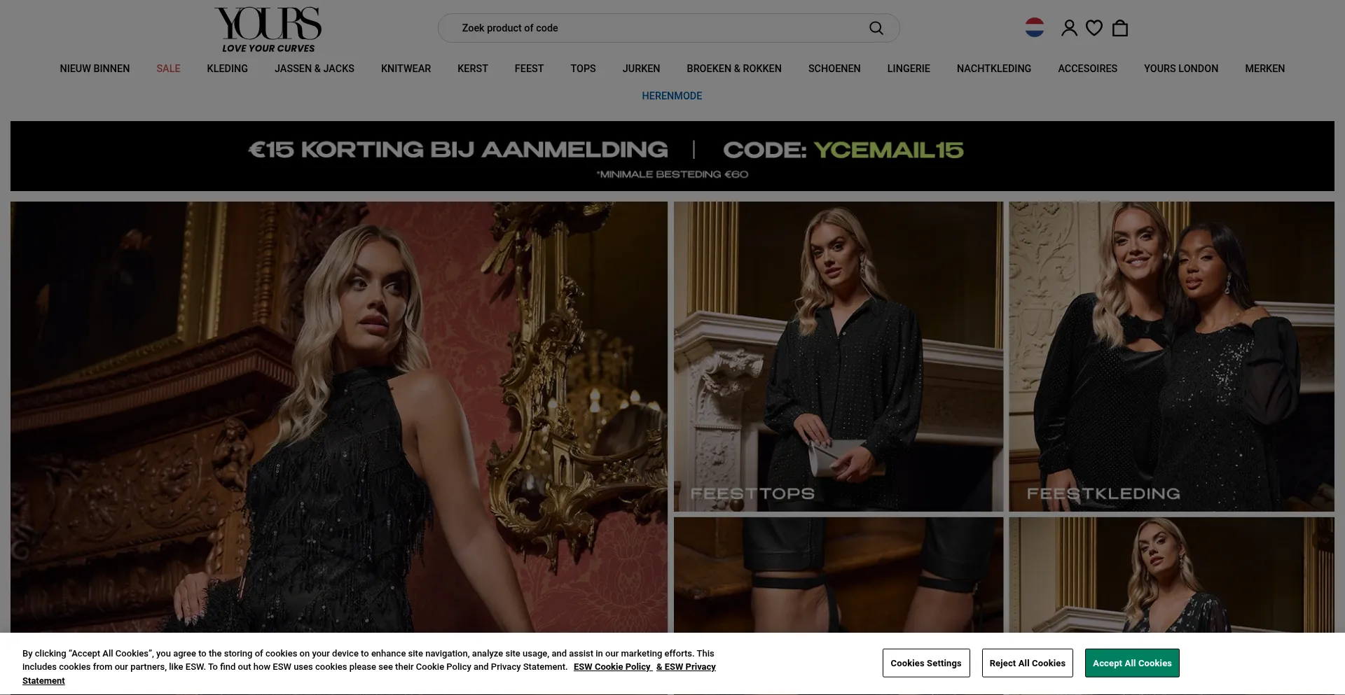 The website implements cookie consent mechanisms in compliance with privacy regulations such as GDPR or CCPA. This demonstrates that yoursclothing.nl adheres to data protection standards and provides users with control over personal data collection practices.
