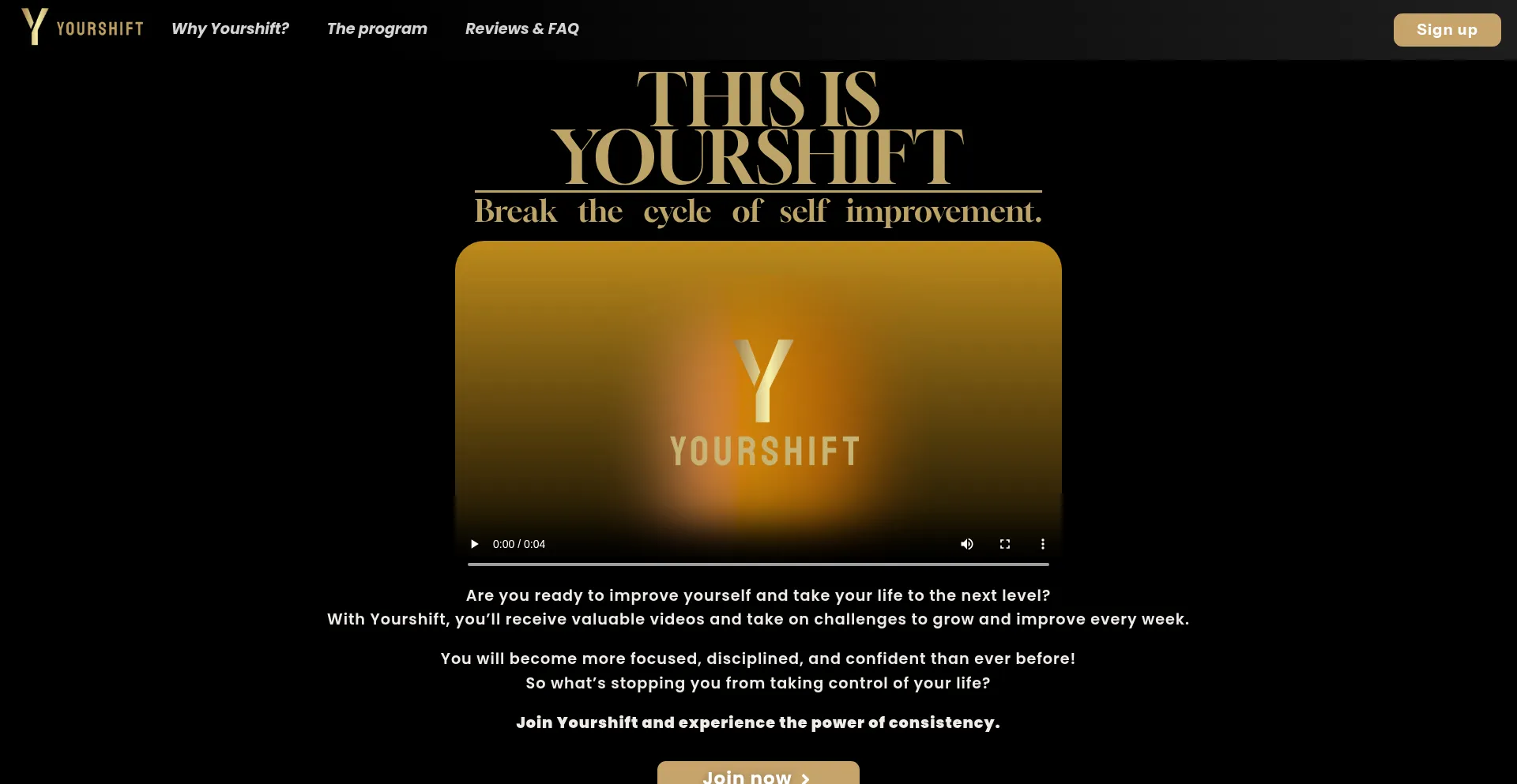 Are you ready to improve yourself and take your life to the next level?With Yourshift, you’ll receive valuable videos and take on challenges to grow and improve every week.