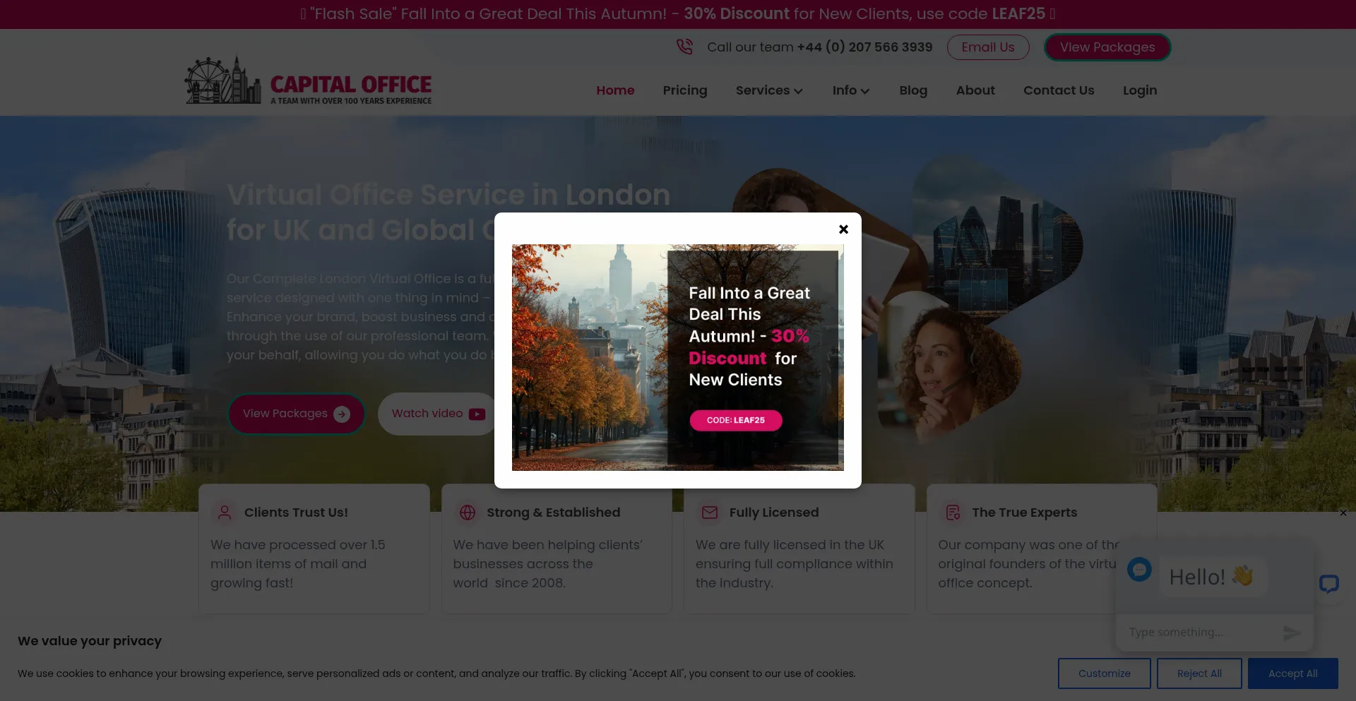 The website implements cookie consent mechanisms in compliance with privacy regulations such as GDPR or CCPA. This demonstrates that yourvirtualofficelondon.co.uk adheres to data protection standards and provides users with control over personal data collection practices.