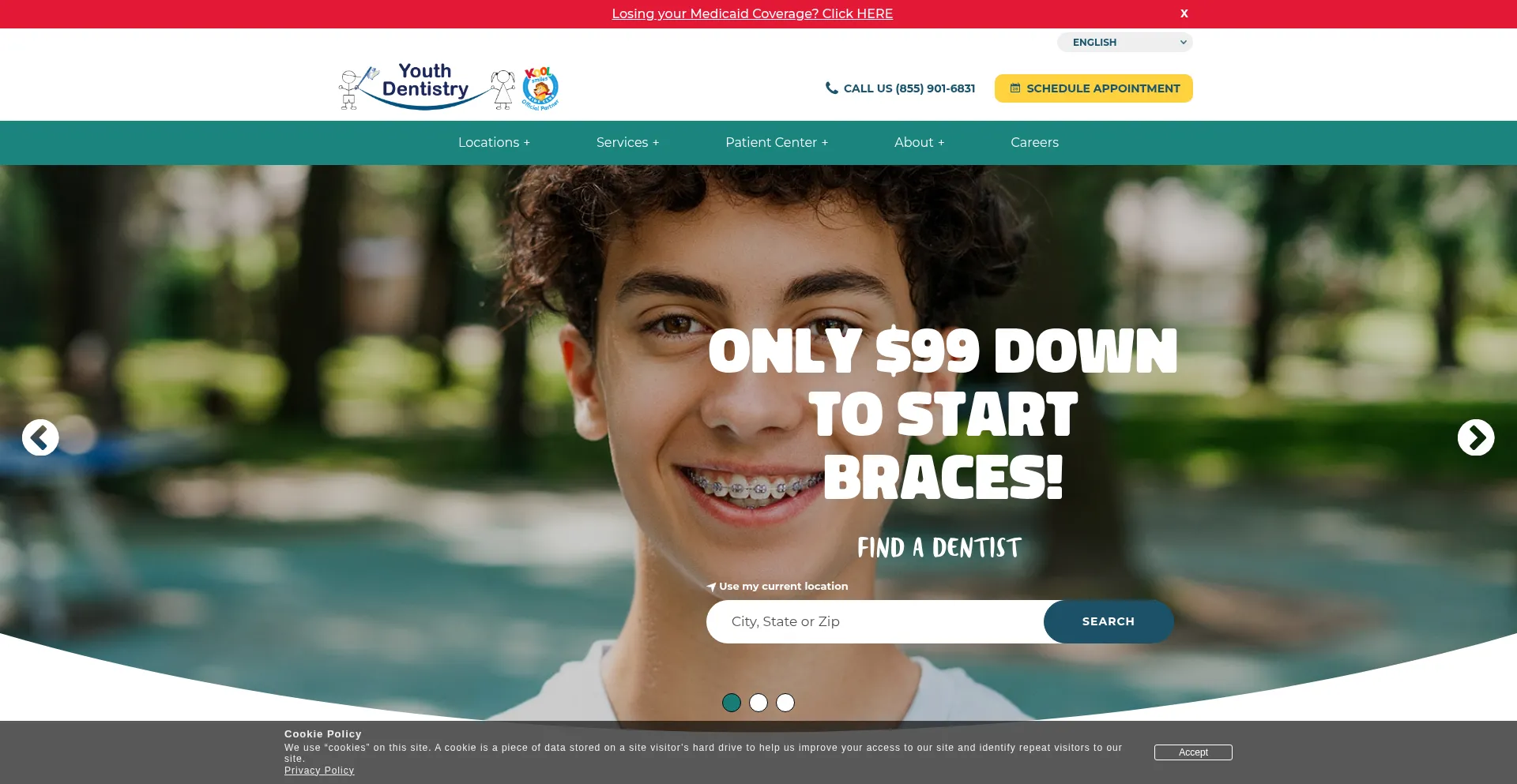 The website implements cookie consent mechanisms in compliance with privacy regulations such as GDPR or CCPA. This demonstrates that youthdentistry.com adheres to data protection standards and provides users with control over personal data collection practices.