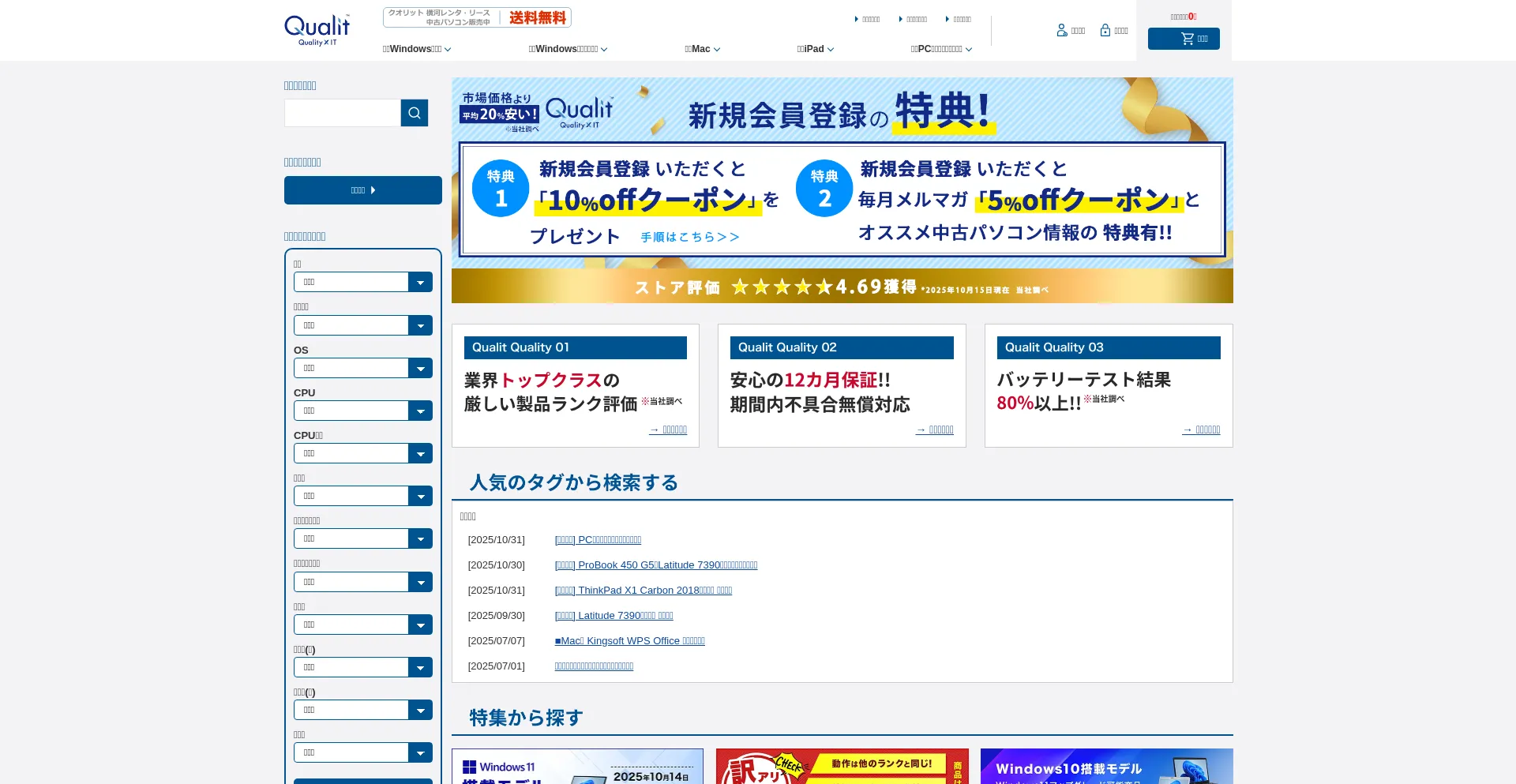 毎日1000台以上返却される法人向けレンタルPCを厳格な品質基準によりリフレッシュし、中古PC・中古パソコンを特価で提供していま�...