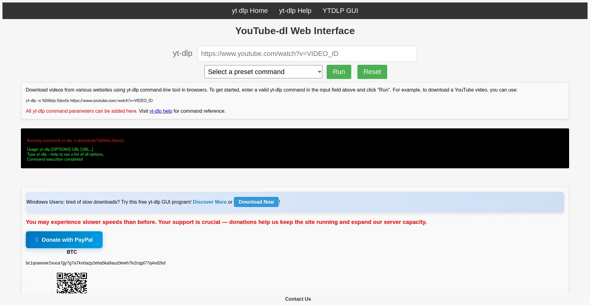 YTDLP Web UI provides a web interface, online console for yt-dlp command-line tool. You can run any console commands of yt-dlp/youtube-dl/ytdl/yt dlp/ytdlp directly on webpage a...