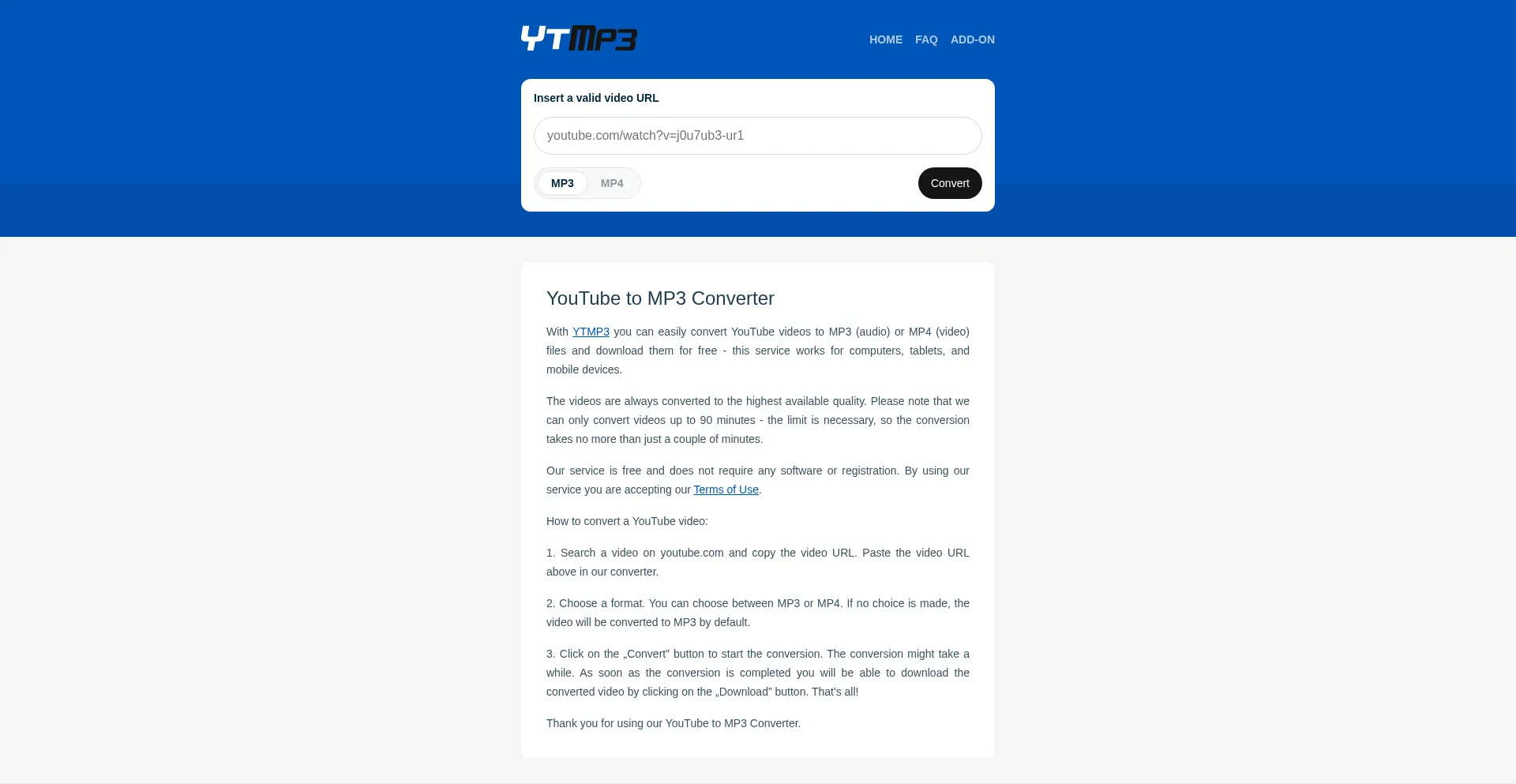 Easily convert YouTube videos to MP3 or MP4 files and download them for free. There is no registration or software needed.