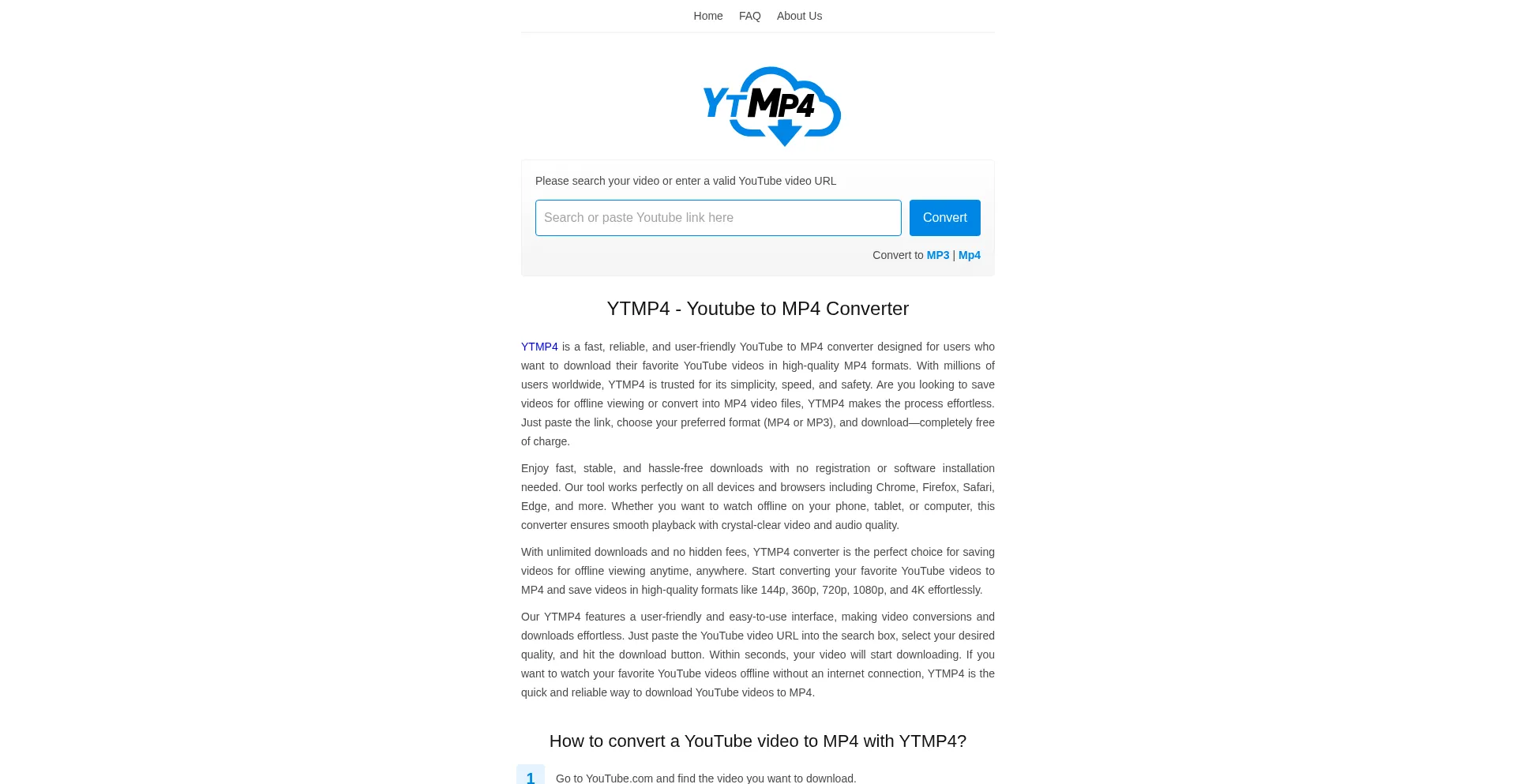 YTMP4 is a popular YouTube to MP4 converter that allows you to easily convert and download YouTube videos to MP4 for free in high quality.