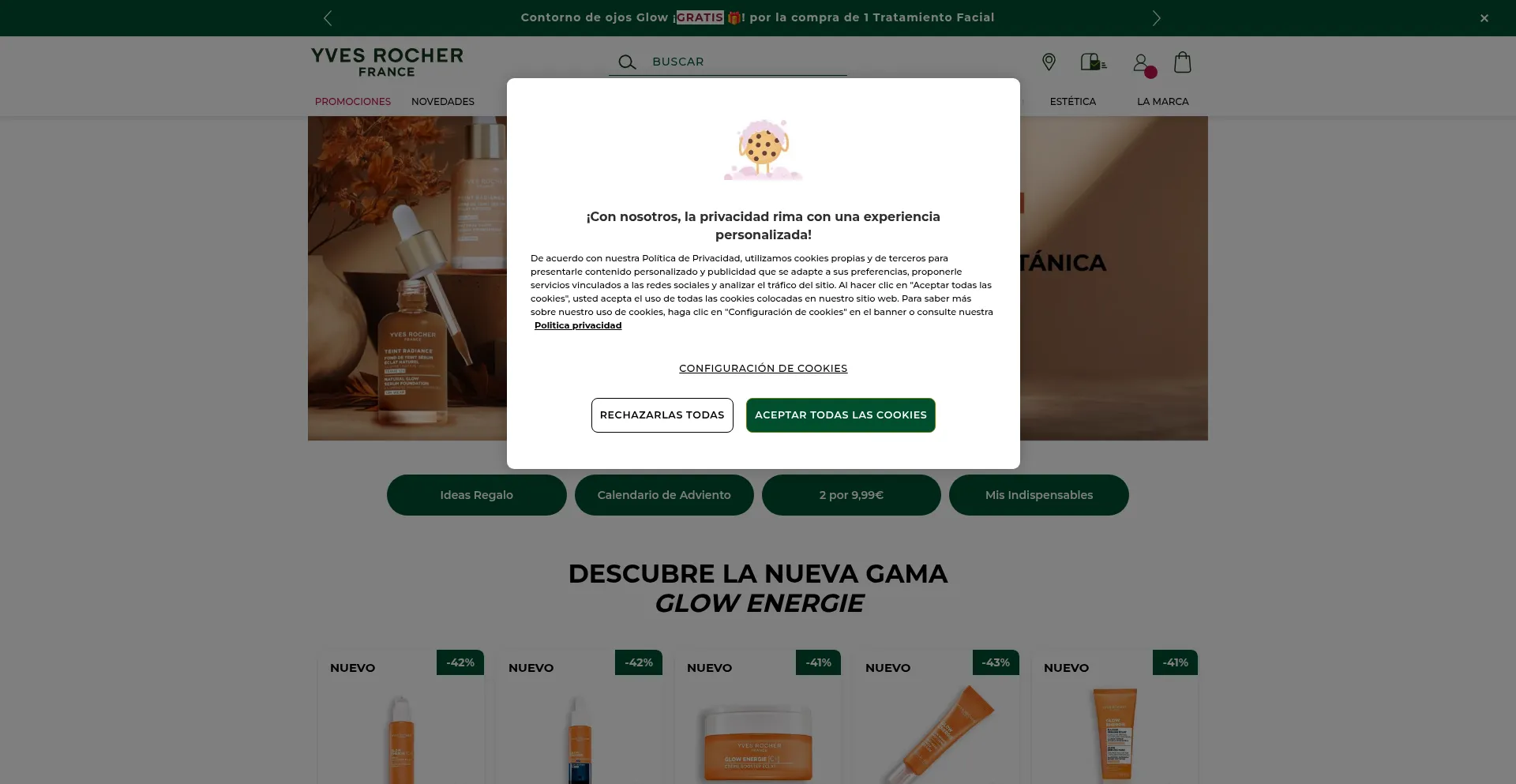 The website implements cookie consent mechanisms in compliance with privacy regulations such as GDPR or CCPA. This demonstrates that yves-rocher.es adheres to data protection standards and provides users with control over personal data collection practices.