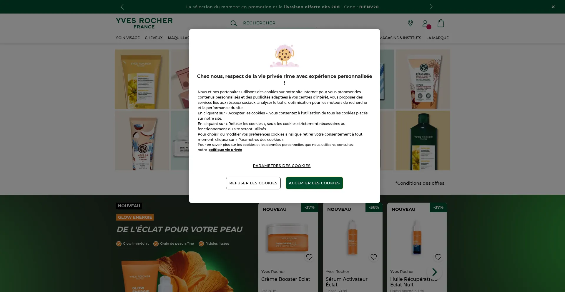 The website implements cookie consent mechanisms in compliance with privacy regulations such as GDPR or CCPA. This demonstrates that yves-rocher.fr adheres to data protection standards and provides users with control over personal data collection practices.