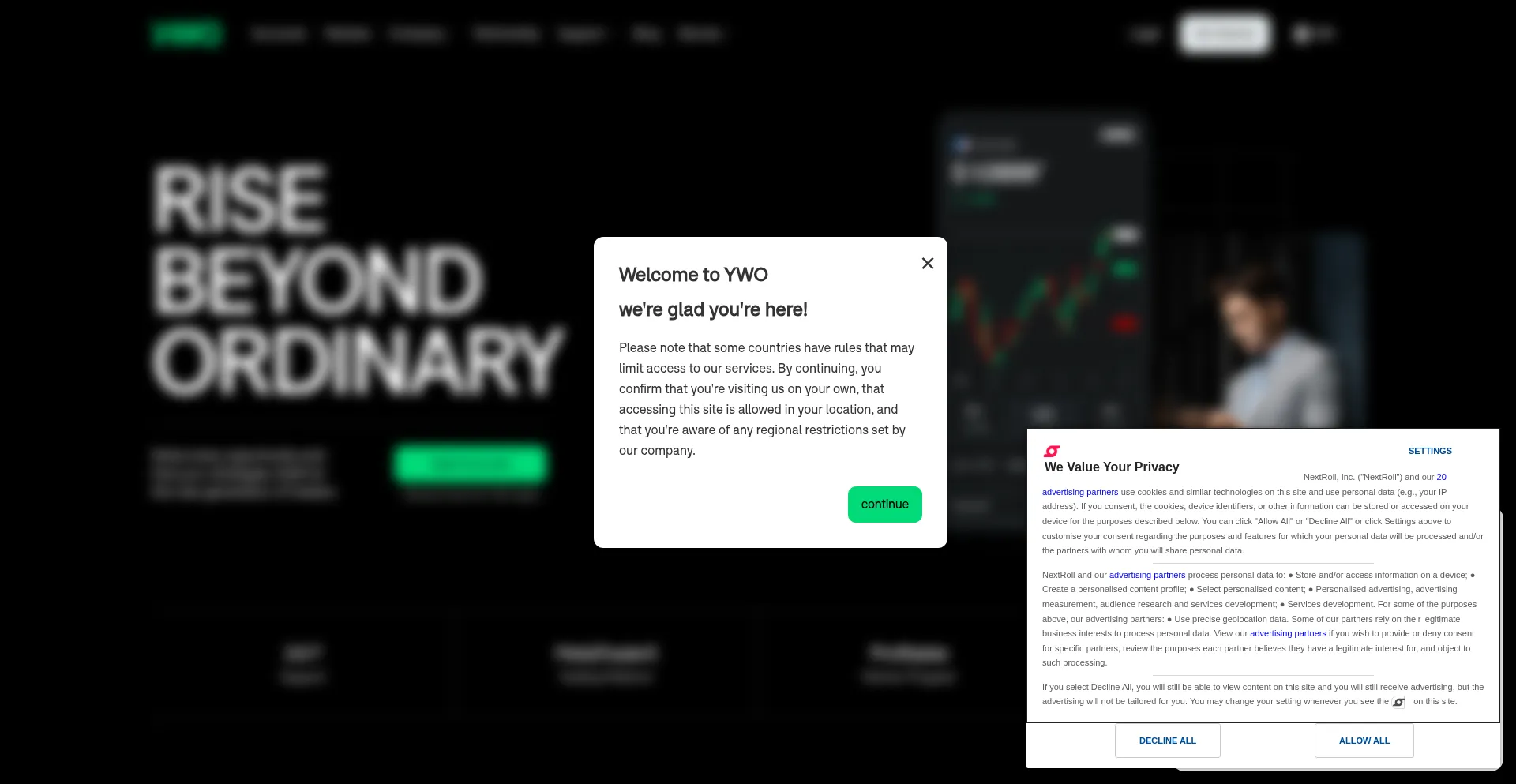 The website implements cookie consent mechanisms in compliance with privacy regulations such as GDPR or CCPA. This demonstrates that ywo.com adheres to data protection standards and provides users with control over personal data collection practices.