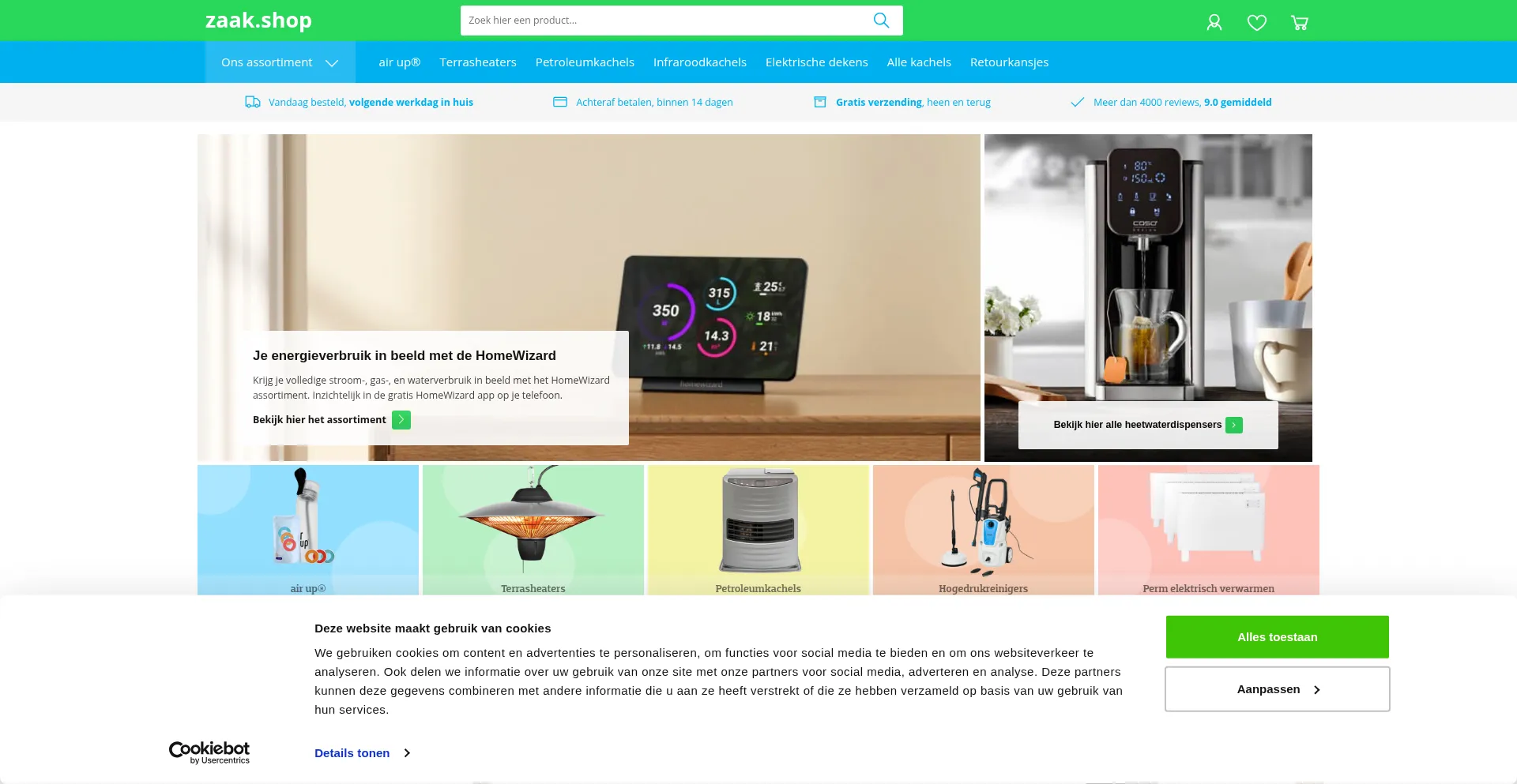 The website implements cookie consent mechanisms in compliance with privacy regulations such as GDPR or CCPA. This demonstrates that zaak-shops.nl adheres to data protection standards and provides users with control over personal data collection practices.