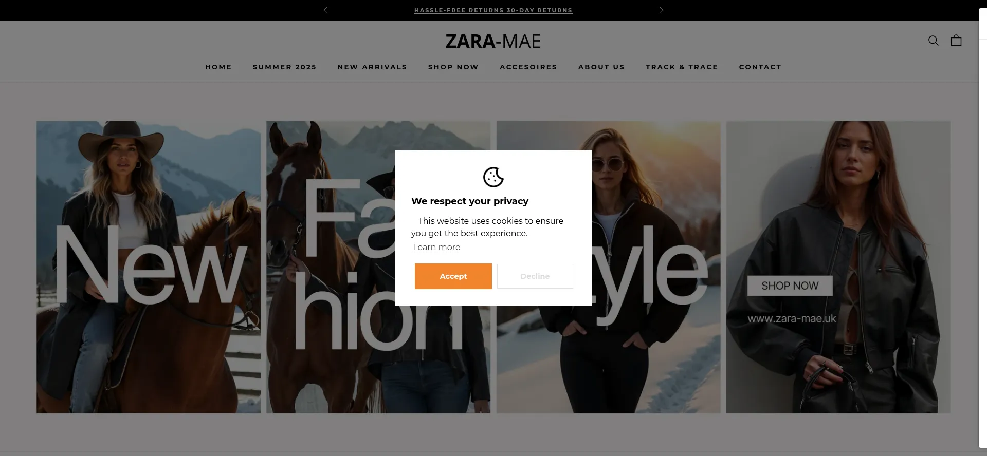 Analysis indicates that zara-mae.uk operates as an e-commerce platform facilitating online transactions for goods or services. The website implements shopping cart functionality, payment processing systems, and product catalog features typical of commercial retail operations.