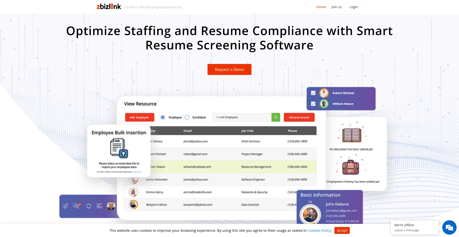 The zbizlink.com website implements data collection forms requesting personal information including names, email addresses, phone numbers, or other sensitive details. Users should verify the legitimacy of it and review privacy policies before submitting personal data.