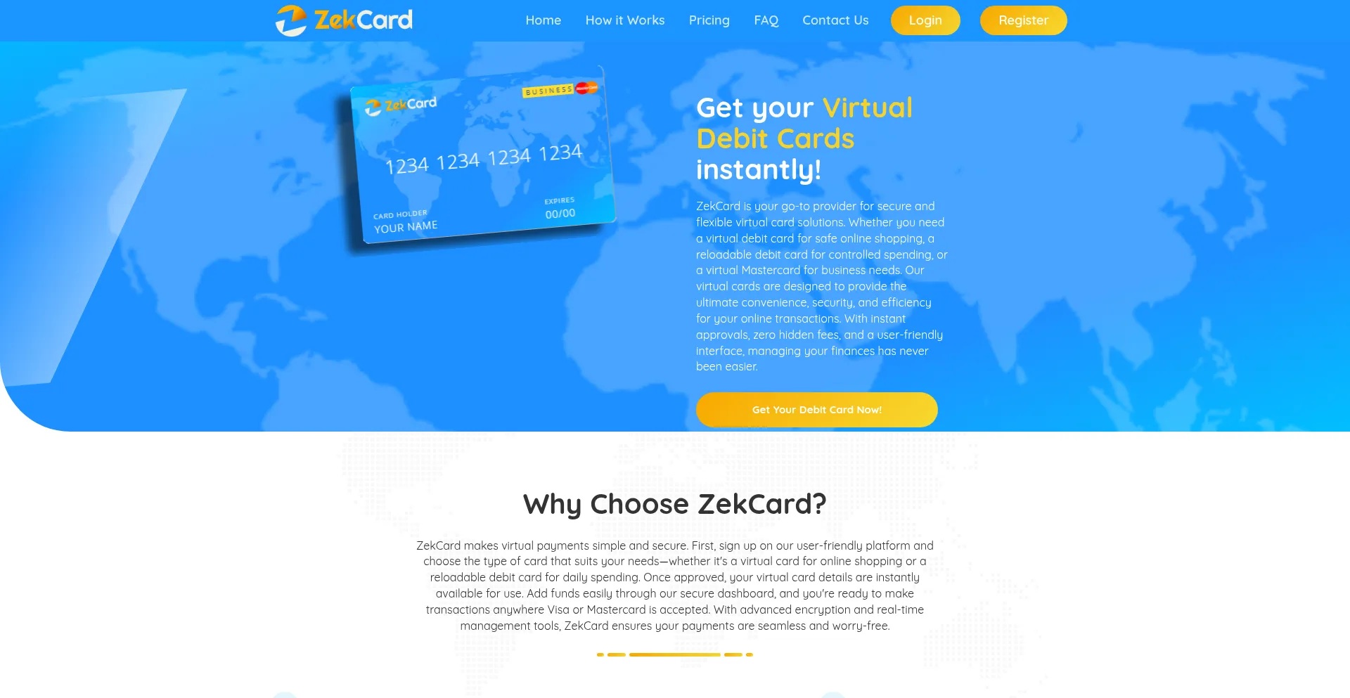 ZekCard offers secure virtual cards, prepaid debit cards and Visa gift cards for seamless online payments. Enjoy instant approvals, no fees, and reliable payment solutions today!