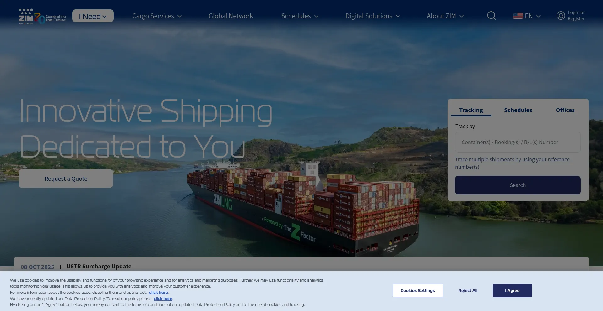 The website implements cookie consent mechanisms in compliance with privacy regulations such as GDPR or CCPA. This demonstrates that zim.com adheres to data protection standards and provides users with control over personal data collection practices.