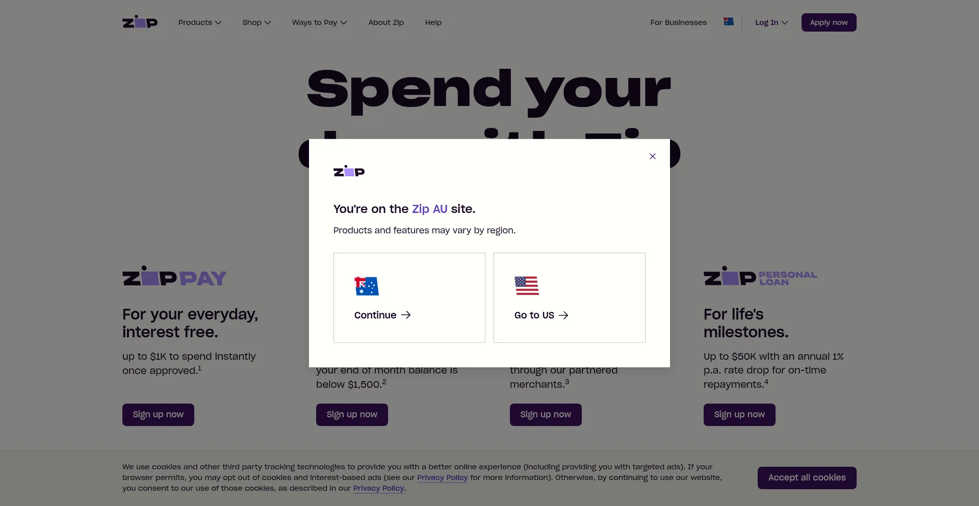 The website implements cookie consent mechanisms in compliance with privacy regulations such as GDPR or CCPA. This demonstrates that zippay.com.au adheres to data protection standards and provides users with control over personal data collection practices.