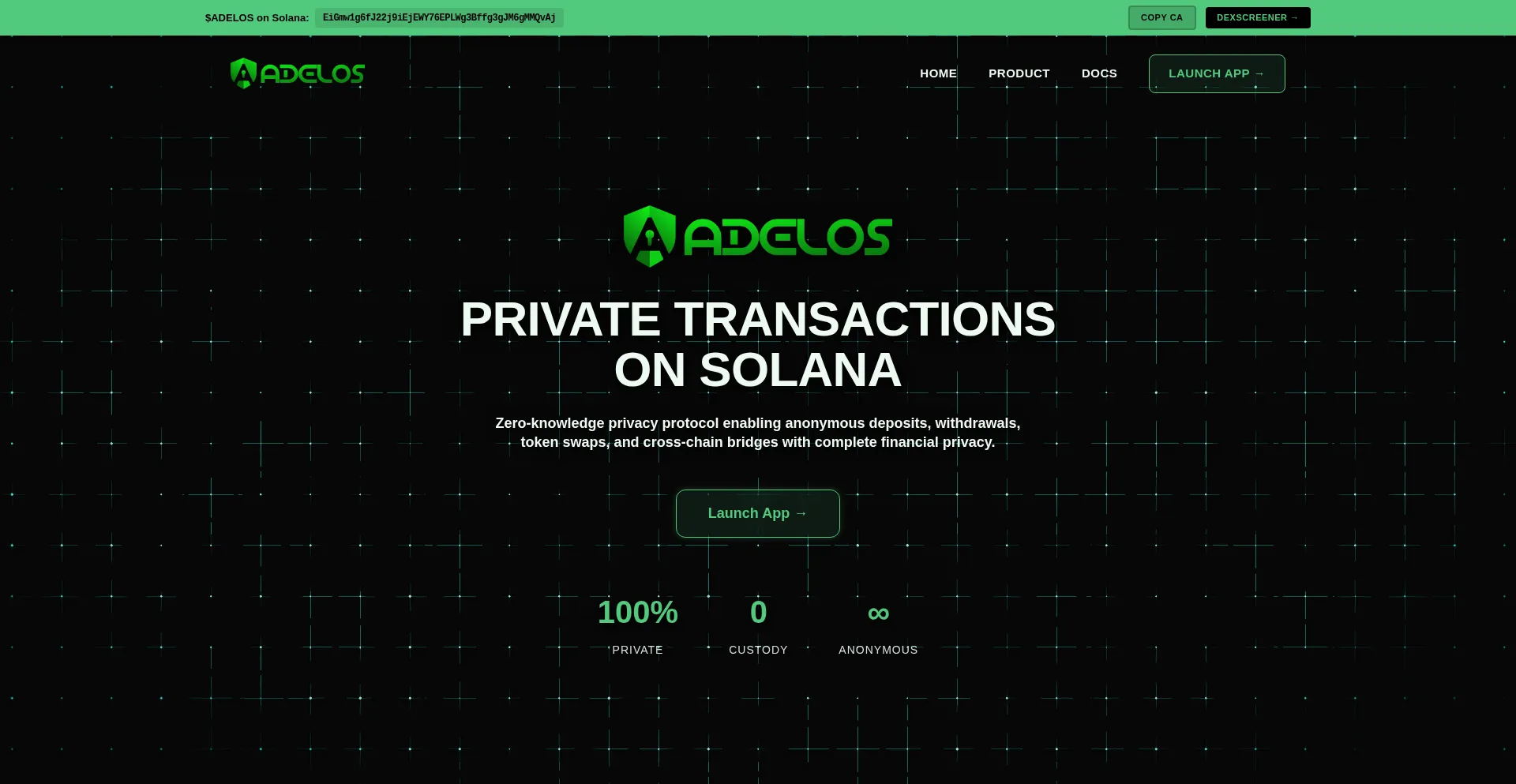 Adelos - Zero-Knowledge Privacy Transactions on Solana. Create private transactions with advanced cryptographic proofs while maintaining full anonymity and security on Solana ma...