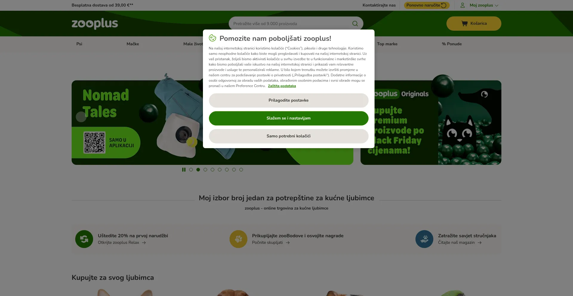 The website implements cookie consent mechanisms in compliance with privacy regulations such as GDPR or CCPA. This demonstrates that zooplus.hr adheres to data protection standards and provides users with control over personal data collection practices.