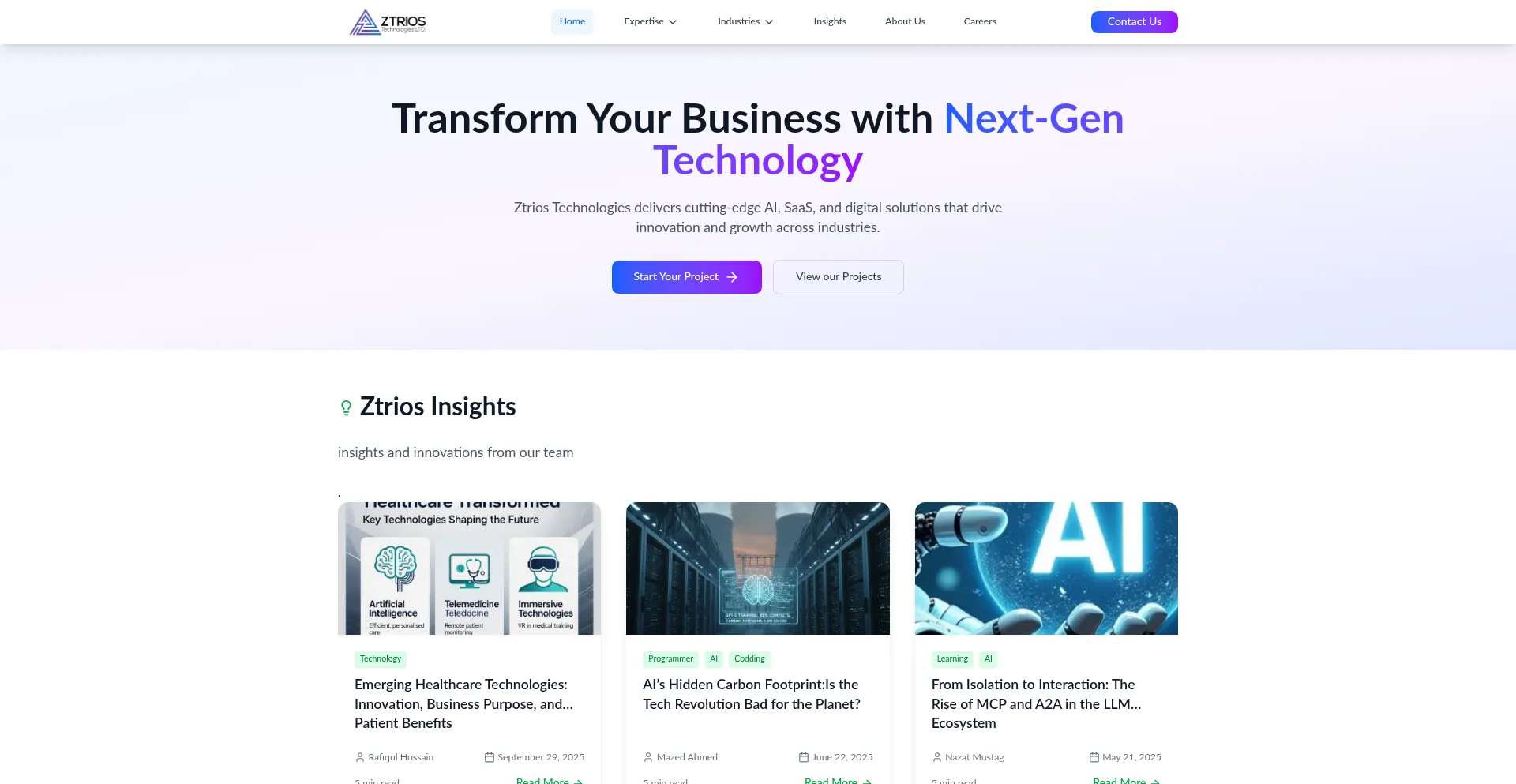 Ztrios Technologies delivers cutting-edge AI, SaaS, and digital solutions that drive innovation and growth across industries.
